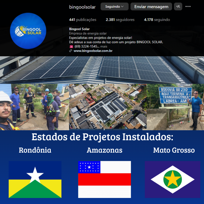 Especialistas em sistemas de energia solar, com exemplos de belos projetos instalados. A empresa é pertencente do grupo BINGOOL, há mais de 20 anos investindo no Norte do Brasil.